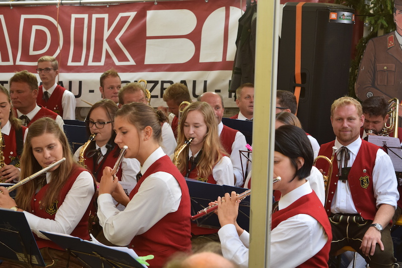 Die 24 interessierten Kinder und Jugendliche wurden vom Kapellmeister höchstpersönlich in die Kunst des Marschierens eingeführt und durften natürlich auch die Instrumente und Bekleidung der Musikkapelle kennenlernen und ausprobieren. Auch eigene Instrumente wurden gebastelt, welche dann in einer Klanggeschichte zum Einsatz kamen, eine Bodypercussion Choreographie einstudiert, und Schlüsselanhänger als Erinnerung gebastelt.