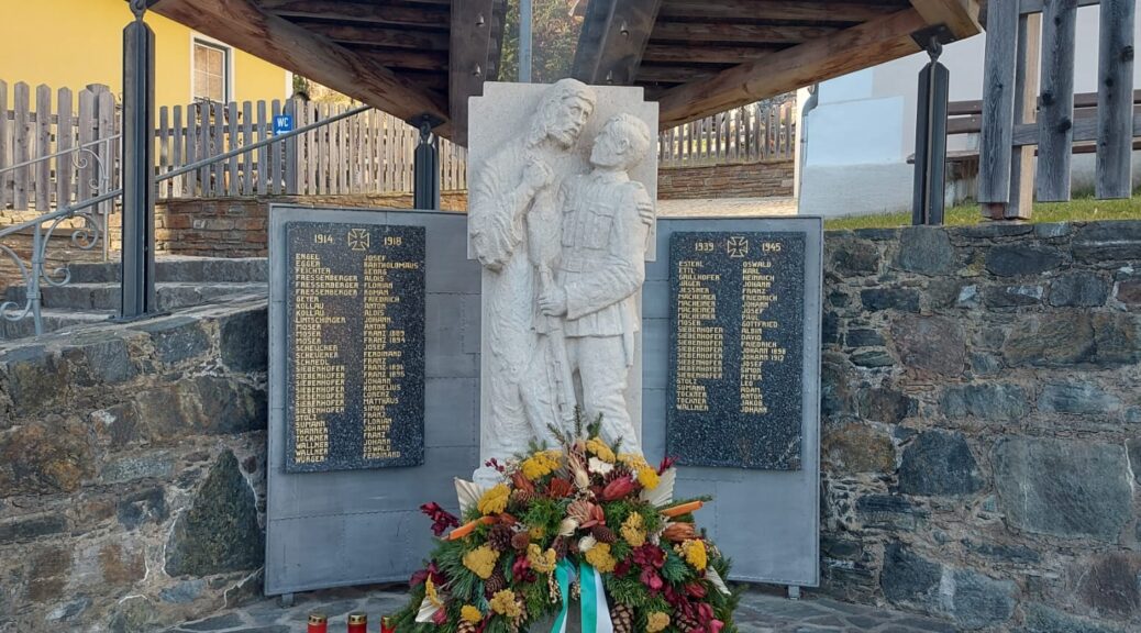 Nach der Heiligen Messe, die von Pfarrer Josef Stuhlpfarrer würdevoll gehalten und von uns musikalisch umrahmt wurde, versammelten sich alle Anwesenden beim Kriegerdenkmal zum Heldengedenken. Obmann Manfred Kogler fand in seine Ansprache erneut eindrucksvolle Worte, die zum Nachdenken anregten.