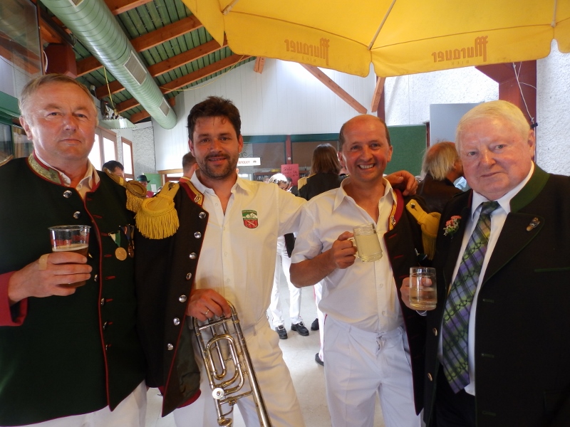 Nach einigen gewaltigen Ehrensalven der Schützengarde am historischen Friesacher Hauptplatz zogen wir mit den Ehrengästen, begleitet von Trommeln und Fanfaren, in das Jubiläumszelt im Fürstenhof. Dort wurde dieses Fest mit dem Bieranstich und einem Konzert unserer Musikkapelle offiziell eröffnet. Durch die gekonnte Mischung unseres Kapellmeisters in der Programmauswahl konnten wir das Publikum mitreißen und die Stimmung im Festzelt kräftig anheizen.