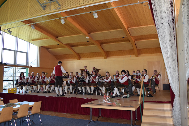 Der Nachmittag gehörte, einem Bezirksmusikfest gebührend, den konzertierenden Musikkapellen. Mit ihren tollen Programmen brachten sie die Stimmung im Festzelt beinahe zum Überlaufen und ließen nahezu niemanden mehr auf den Bänken sitzen. Am späten Nachmittag durften wir den Markentenderinnen unserer Nachbarn, der Schützenmusikkapelle Krakaudorf, zum überlegenen Sieg bei der Wahl zur „Herzerl-Marketenderin“ gratulieren. Die beiden Damen, Verena und Viktoria, freuen sich nun über Schikarten und Thermengutscheine, die SMK Krakaudorf über 100 Liter Bier. Schließlich war auch am Sonntagabend von Müdigkeit im Publikum noch wenig zu spüren und so spielten „Die jungen Obersteirer“ munter zum Tanz auf und ließen unser großes Fest in einem würdigen Rahmen langsam ausklingen.